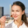 1 Baixar a cobertura transparente, retirar o elástico e aplicar o produto com movimentos circulares no dorso da mão para garantir que o pó mineral comece a sair.